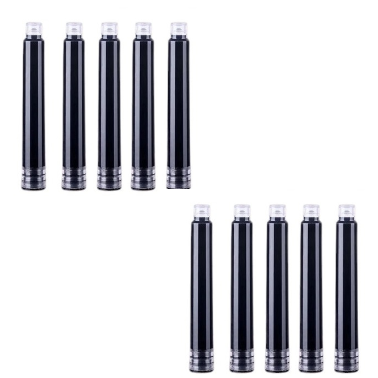 Kit com 10 recargas de tinta nanquim preta para caneta tinteiro. Cada recarga possui 5ml, ideal para reposicao pratica e de longa duracao. Produto de qualidade que garante escrita suave e uniforme.